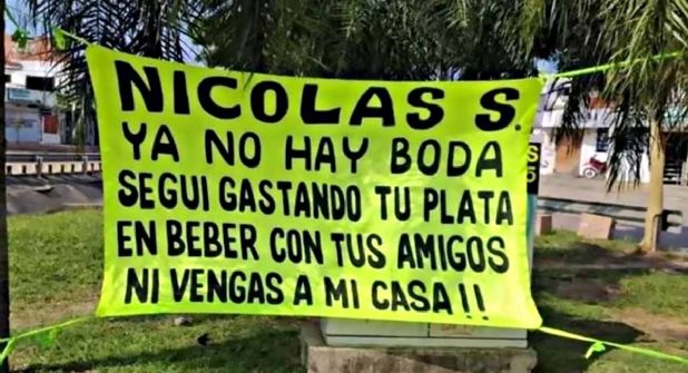 “Nicolas S. ya no hay boda, sigue gastando tu plata en beber con tus amigos ni vengas a mi casa“.