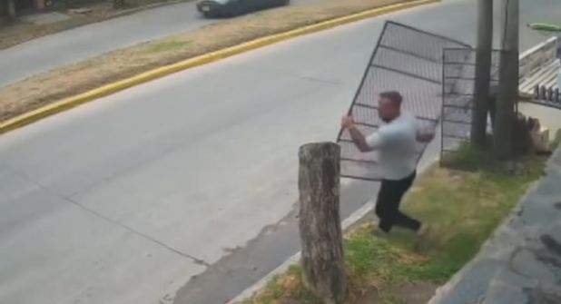 El video que fue publicado en redes sociales muestra el momento en que el hombre quien es llamado un héroe sin capa, arroja la reja a la calle provocando que los ladrones en la motocicleta pierdan el equilibrio.