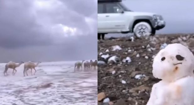 La nevada de registró en la ciudad de Tabuk, Arabia Saudita, en pleno desierto.
