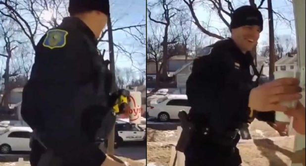 Fue en TikTok donde se compartió el divertido video de un policía que llega a una casa para entregar un pedido de comida.