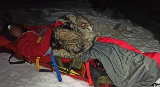 Perro se recuesta sobre su dueño, un excursionista, y lo salva de morir congelado tras un accidente en una montaña.