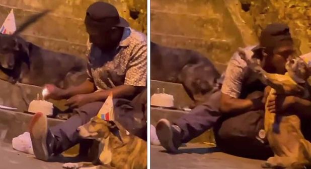 Un video enternecedor de un indigente que celebra su cumpleaños junto con sus perritos se ha vuelto viral.