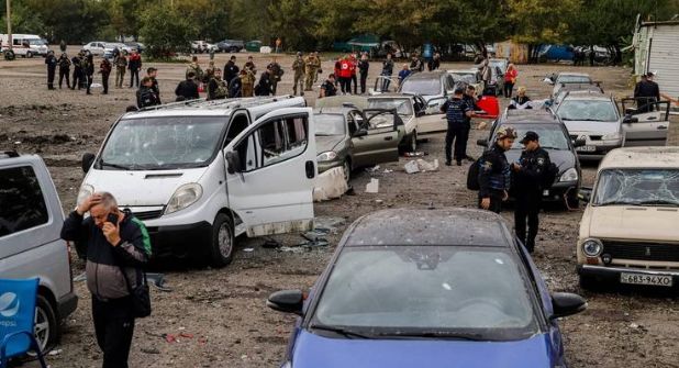 El ataque se llevó a cabo cerca del límite entre la zona ucraniana y la ocupada por las fuerzas rusas en la región de Zaporiyia, uno de los territorios anexionados por Rusia. Según la Fiscalía Ucraniana 25 civiles perdieron la vida y 52 resultaron heridas en el ataque armado.
