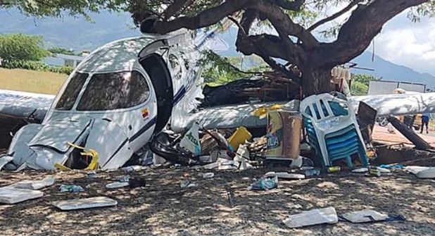 El accidente se registró en el Aeropuerto Internacional Simón Bolívar de Santa Marta cuando la avioneta que cubría la ruta Santa Marta - Bogotá, se salió de la pista de aterrizaje, y sin poder controlarla rompió la alambrada del aeropuerto y atravesó la carretera, hasta chocar contra un árbol que detuvo la trayectoria.