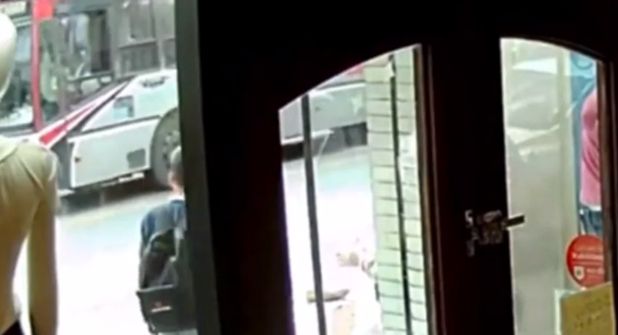 En las imágenes se observa a un padre y su hijo caminando de manera normal, pero de pronto, el pequeño logra soltarse de la mano de su padre y corre hacia la calle. En ese momento pasaba un autobús, que aunque se frena un poco, embiste de lleno al niño.