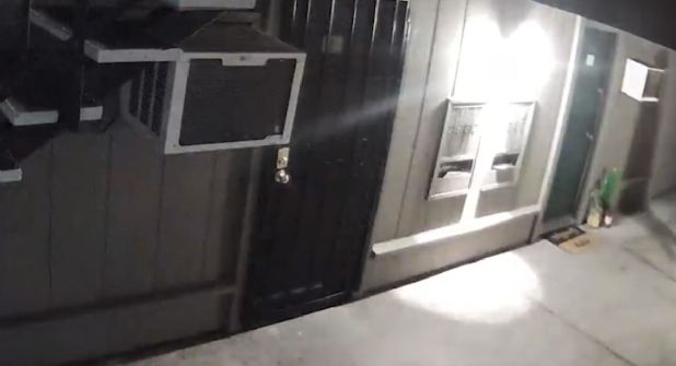 En el material compartido por la policía se puede ver al sospechoso caminar en lo que parece ser un complejo de apartamentos.