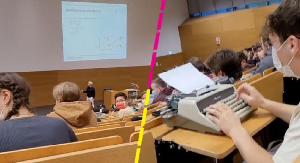 En un video que se hizo viral en Tik Tok se observa como el alumno apantalló a sus compañeros, al comenzar a teclear y ocasionar el ruido característico de la máquina de escribir, incluyendo la campanilla al cambiar de renglón.