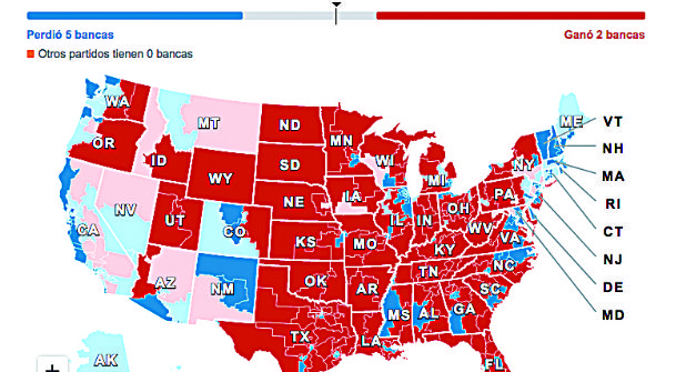 Las primeras horas de escrutinio de las elecciones intermedias de EU muestran una ventaja de los republicanos en la Cámara, mientras la composición del Senado, donde los resultados dependen de tres o cuatro Estados, al cierre de esta edición aún sigue en el aire.