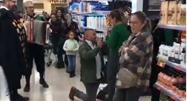 A través de Twitter se viralizó un video donde se aprecia a un enamorado llegar hasta el lugar del trabajo de su amada para proponerle pasar el resto de sus vidas juntos. El hecho quedó registrado en un Mercadona de España, donde la chica en cuestión trabaja.