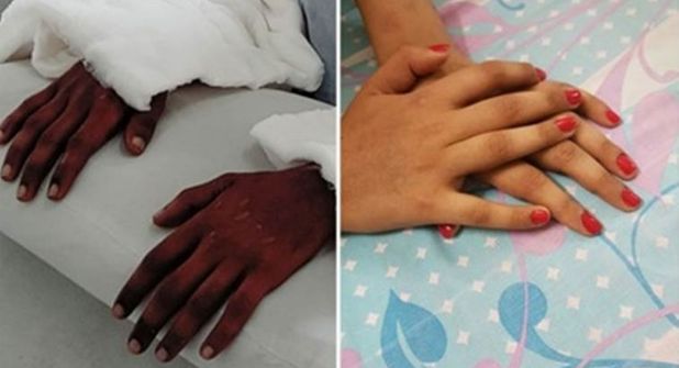 INDIA.- Un caso que le dio vuelta al mundo por lo sorprendente y maravilloso, es el trasplante de manos de un hombre a una jovencita, quien perdió sus extremidades en un accidente. Lo increíble es que con el paso de los años, el color de las manos, así como el grosor ha cambiado y se han adaptado a la joven. Este caso se presentó en la India.