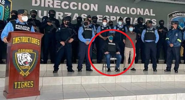 El lunes, decenas de policías rodearon la casa de Hernández y cadenas de noticias difundieron imágenes de un documento que mostraba una “solicitud formal de arresto provisional con fines de extradición a los Estados Unidos de América de Juan Orlando Hernández Alvarado”.