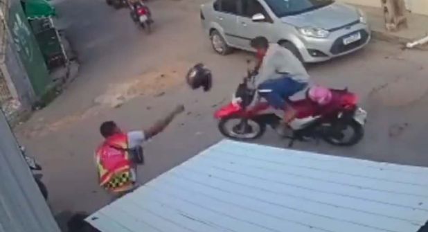Fue gracias a una cámara de seguridad que el acto ha quedado inmortalizado en video. El material tomado por la cámara de una tienda cercana al lugar de los hechos, muestra el momento en que un joven lanza el casco al ladrón de una motocicleta, consiguiendo que, tras el golpe, este perdiese el equilibrio cayendo contra el piso.