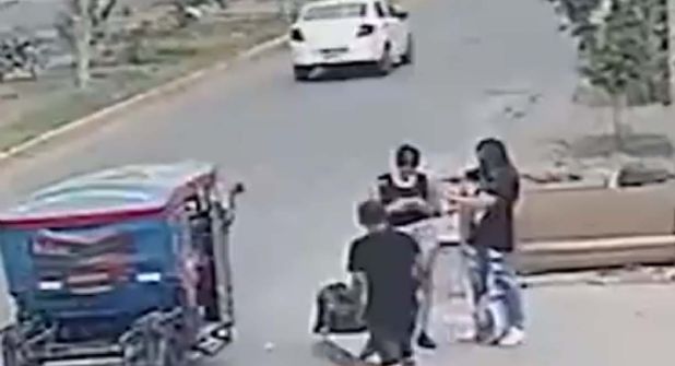 El hombre que le arrebató el celular, se puede ver como de inmediato se sube al mototaxi y la chica, en un intentó por detenerlo lo persigue, intentando subir también al mototaxi. Los delincuentes sin embargo no se detuvieron y la arrastraron casi una cuadra.
