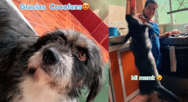 Aun cuando fue todo un ladrón de alimentos, su familia no pudo enojarse con el tremendo perrito, ya que sus misma dueña se encontraban jugando con él mostrándole una oreja de cerdo cruda mientras el perro saltaba para alcanzarla, una de ellas estaba fascinada con como Coco movía la cola de la emoción y jamás se imaginó el gran salto que el can daría para darse un festín.
