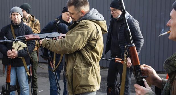 Civiles se arman para defender junto al ejercito la capital de Ucrania, Kiev contra la invasión de rusa lanzada por el presidente Vladimir Putin.
