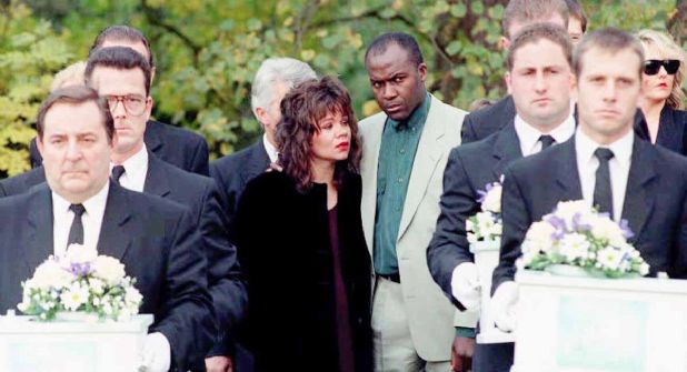 En el funeral, los portadores del féretro llevaron ocho pequeños ataúdes verdes y blancos adornados con flores en una procesión por el cementerio de West Norwood en el sur de Londres.