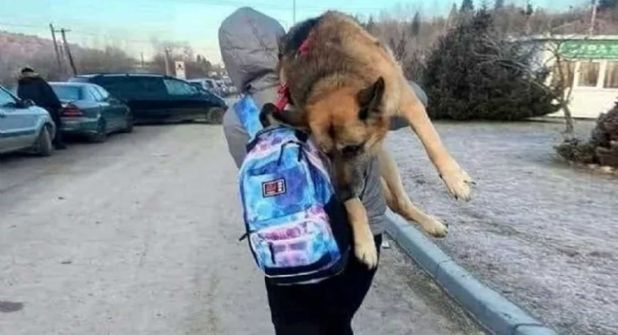 La historia de la mujer que carga 17 kilómetros a su perro anciano para salir de Ucrania sensibilizó y puso a reflexionar a millones de usuarios en las redes.