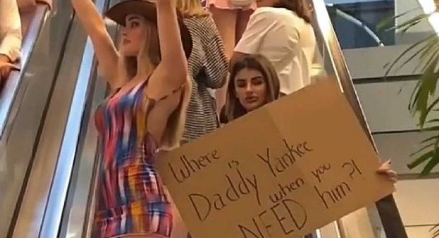 El par de mujeres iban vestidas con prendas provocativas y con carteles donde pedían que necesitaban un patrocinador para combustible para sus autos.