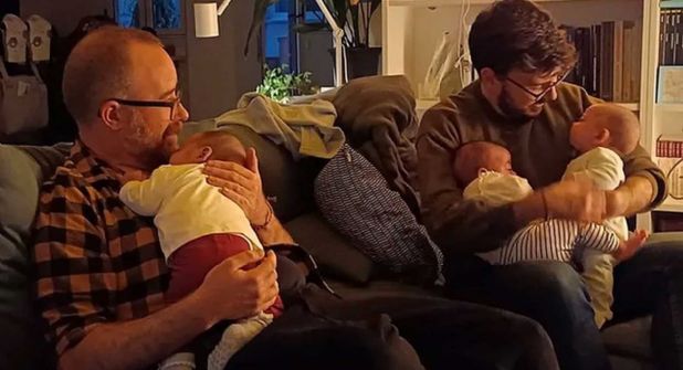 La historia de amor de una pareja de hombres que adoptó a unas trillizas recién nacidas se hizo viral en las redes sociales.
