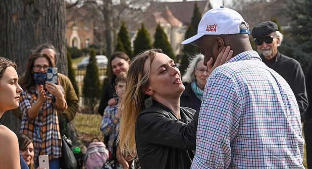Siete invitados a la boda trajeron suministros médicos, máscaras y otros artículos para que María los llevara a Ucrania. La gente se abrazó y, en un momento, María habló con familiares en Odesa.
