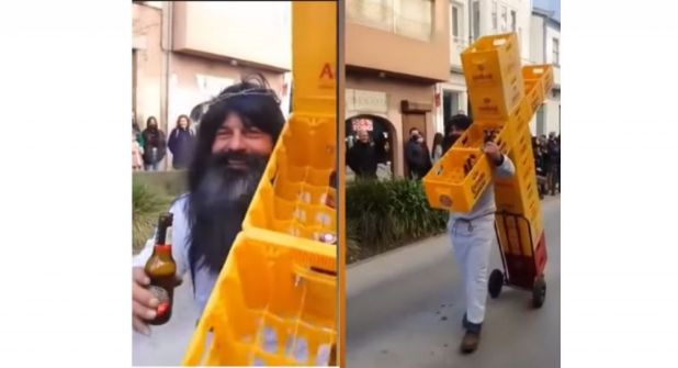 Ahora, el hombre que interpretó a Jesús cargando una cruz hecha de cajas de cerveza, se volvió viral por mostrar una forma divertida y poco seria de un personaje bíblico, en un acto sumamente necesario para mantener la atención y la felicidad en plena pandemia covid-19.