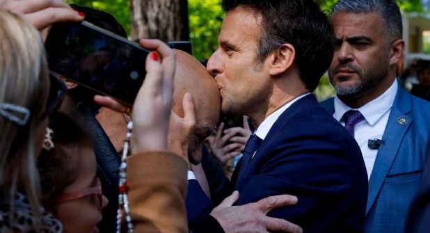 Este domingo 24 de abril, en la segunda vuelta de las elecciones de Francia 2022, ha estado dando la vuelta al mundo la foto del presidente Emmanuel Macron besando la calva de un hombre para la buena suerte.