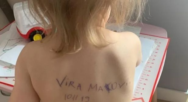 Se trata de Sasha Makoviy, una madre quien compartió su historia a través de las redes sociales y mostró una fotografía de su hija, a quien le escribió los datos de contacto de un familiar en su espalda por si ella muriera y la menor sobreviviera.
