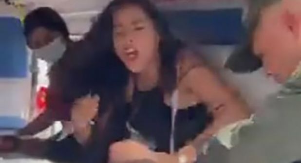 En el video se puede ver que el joven se encuentra en un incómodo estado tratando sobrellevar el momento, mientras los presentes intentan calmar a la enojada novia, que a pesar de las circunstancias continúa gritando a la ambulancia.