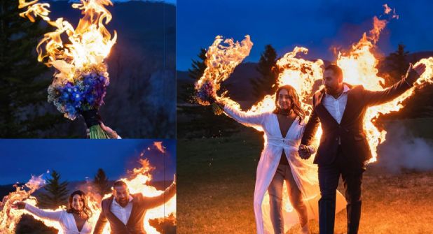 En Estados Unidos, una pareja decidió hacer una entrada digna de una película de Hollywood, misma que ha sorprendido a sus invitados y también a millones de personas en internet, pues haciendo honor a su profesión de dobles de acción, decidieron caminar hacia el altar de la mano... mientras ardían en llamas.
