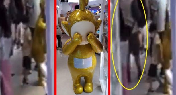 En un video de la cámara de seguridad de la tienda, se puede ver como el menor se encuentra de espaldas a la figura, esperando a sus papás para moverse del sitio. La aglomeración de las personas en el sitio provocaron al niño moverse para abrir espacio y no estorbar en el paso; lamentablemente, y con solo un pequeño toque, esta acción provocó la caída del Teletubbie dorado.