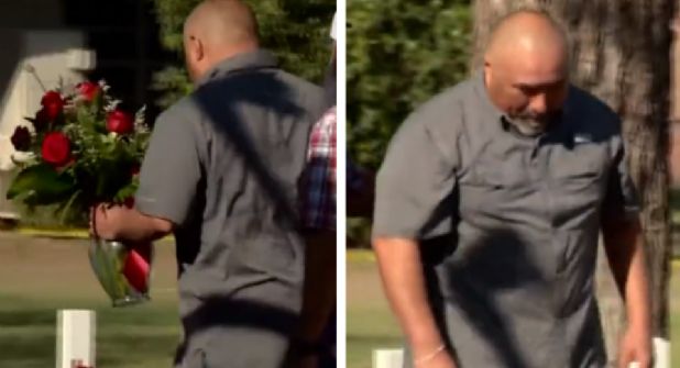 Las imágenes, en las que se ve consternado a Joe García fueron captadas a los noticieros que difundieron la noticia sobre cómo llegaban personas a dejar flores en el memorial.