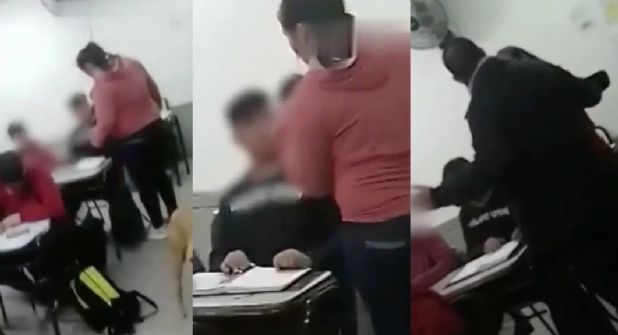 Gracias a un video en redes sociales se puede apreciar la llegada de la mujer al lugar, quien entra sin pedir permiso al salon, todo para tomar desprevenido al supuesto bully y confrontarlo frente a todos los alumnos; acto seguido, lo golpea reafirmando su discurso de no meterse con su hijo.