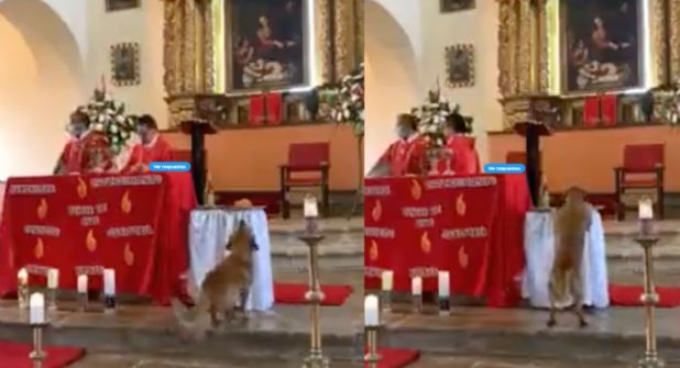 Recientemente en Tik Tok circula un video, en donde se captó un peculiar momento en el medio de una celebración religiosa. Un perro, aparentemente sin dueño entra a la iglesia justo cuando se está celebrando la misa.