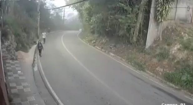 En el video se puede ver a una mujer caminar sobre la orilla del camino y en el fondo a dos hombres.