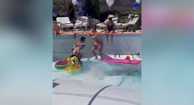 A través de un video que se ha viralizado en redes se aprecia que en la alberca hay un socavón que traga incluso hasta los flotadores. Un hombre también cayó al hoyo y murió.