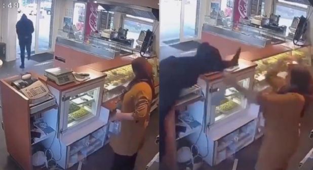 Según se pueden ver en las imágenes, un hombre entra a una panadería, dirigiéndose directamente a la caja registradora. Todo iba según el plan del malhechor, sin esperar como la abuelita toma valentía y lo encara, evitando así que tome el efectivo.