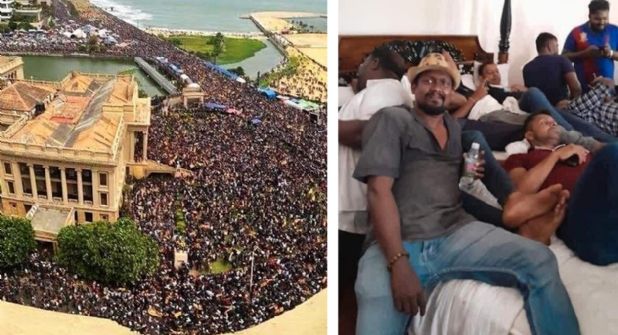 Las protestas nocturnas en la capital comenzaron en abril, con manifestantes pidiendo a los Rajapaksas que abandonaran la política. Algunas manifestaciones se tornaron violentas.