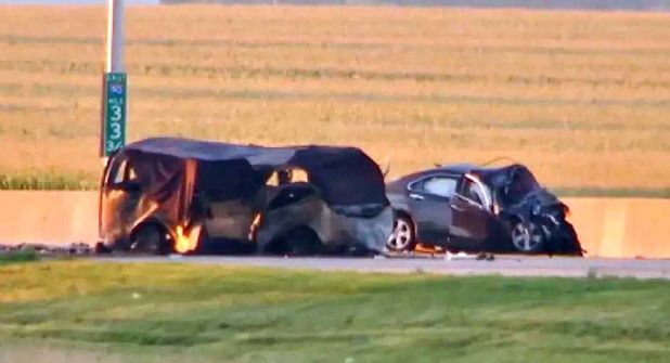 Un automóvil chocó de frente con una camioneta que transportaba a los niños alrededor de las 2 a.m. del domingo en la autopista de peaje Jane Addams Memorial, cerca de Riley, Illinois, según la policía estatal.