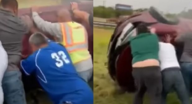 Fue así como comenzó a pedir ayuda a los conductores que pasaban, de inmediato la escena se llenó de voluntarios quienes se movilizaron en bien de la situación y bajo el mando de John David Escobedo, un hispano y veterano de defensa, las 10 personas presentes sumaron sus energías para comenzar la labor de rescate.