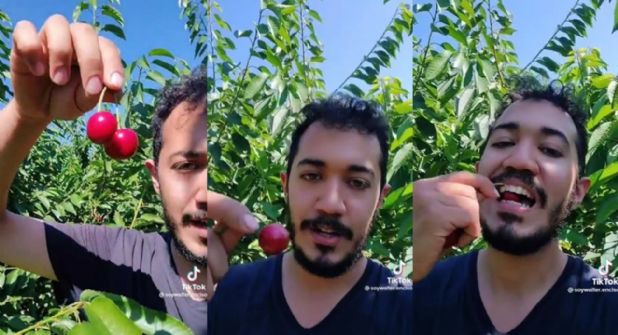 Aquí puedes ver el video del trabajador mexicano que recolecta cerezas esta temporada.