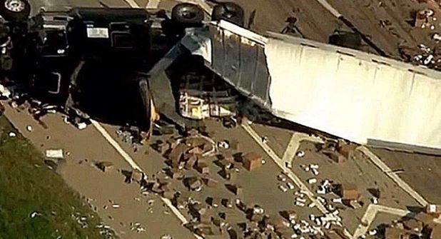 Un semirremolque derramó miles de juguetes sexuales en una carretera en la ciudad de Oklahoma después de volcarse tras un choque con otro camión.