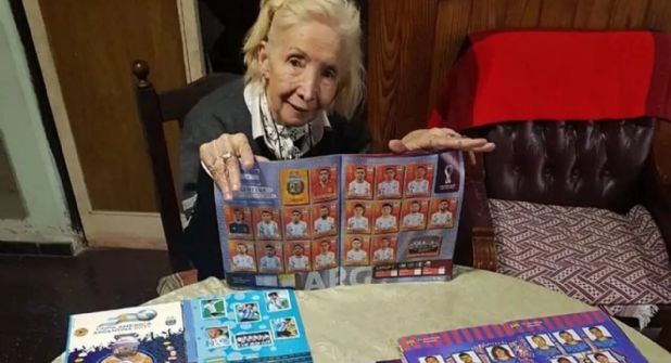 Una abuelita se viralizó en internet luego de gastar lo de su jubilación en dos álbumes Panini del Mundial Qatar 2022.