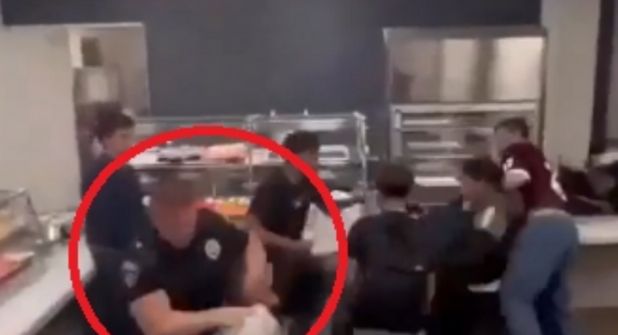 En las imágenes se observa una feroz batalla entre varios alumnos en un área de la preparatoria. Lanzan golpes por todos lados. Sin embargo llegan varios oficiales y uno de ellos sujeta a un alumno latino y lo azota con toda su fuerza contra una mesa. La nuca rebota en el lugar.