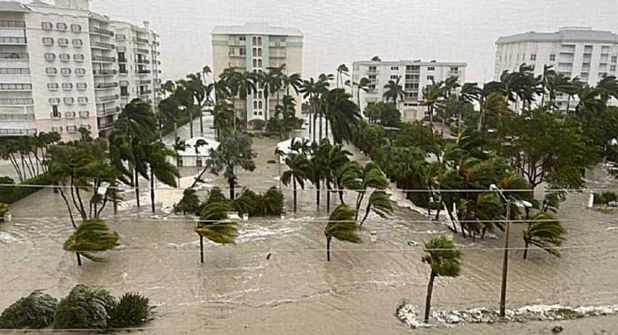 La ciudad de Fort Myers Beach quedó casi sumergida por las inundaciones. Una vista de la isla de Sanibel publicada en Twitter mostró el océano pasando por encima de un malecón hacia la piscina de un hotel turístico.