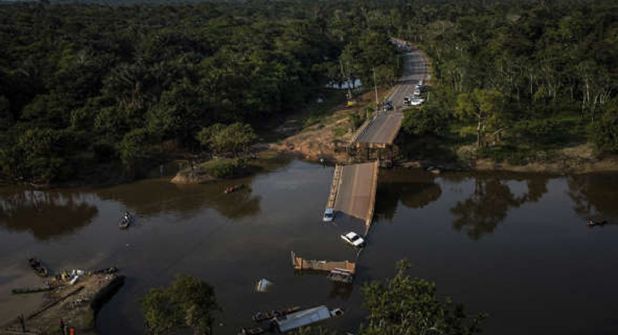 Ahora los lugareños han tenido que estar cruzando en canoas, hasta que el gobierno de Brasil reconstruya el puente.