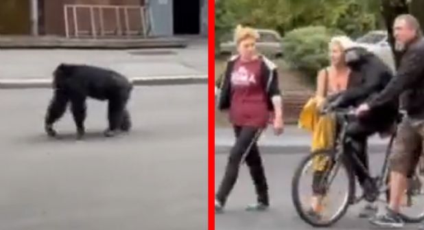 En Ucrania se vio una inusual imagen luego de que un chimpancé escapase de un zoológico y regresase tiempo después en una bicicleta.