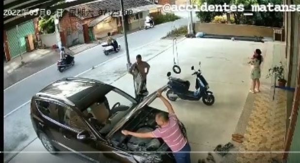 Circula en redes sociales un caso insólito en el que un mecánico que arregla un automóvil es atropellado por el mismo auto. No se especifica el lugar donde ocurrió.