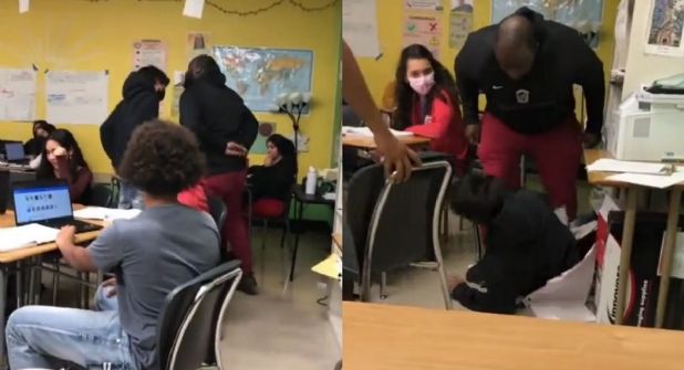 Sin embargo, hasta hace un día se ha hecho viral el incidente captado en los dispositivos electrónicos de los demás alumnos del aula escolar de la Richmond High School del Distrito Escolar de West Contra Costa del estado de Virginia en el vecino Estados Unidos.
