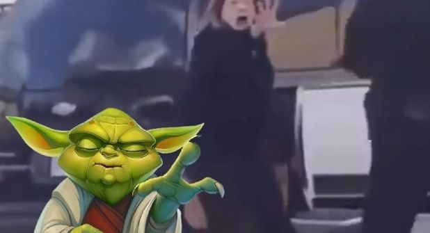 Tal vez por estrategia, el oficial retrocede haciendo parecer incluso que la denominada "Karen" en realidad está utilizando "la fuerza" y la domina con verdadera maestría que hace recordar a los caballeros Jedi o los Lord Sith.