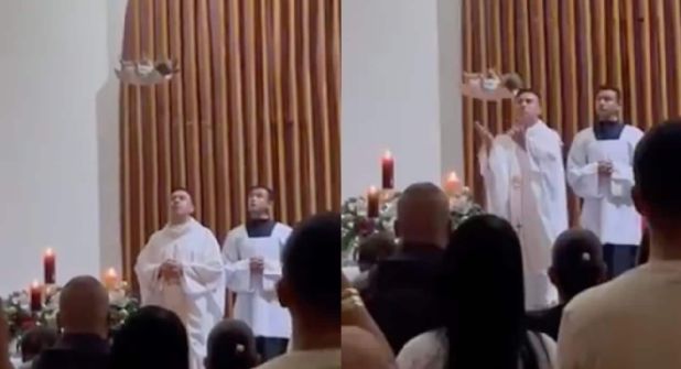 En redes sociales se ha viralizado un video en el que se muestra a un niño Dios bajar desde el techo durante una misa, sorprendiendo a los feligreses por lo extraordinario del evento.